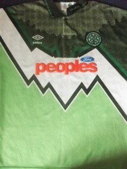 I have the home version of that awful Celtic shirt. One of the only Celtic home strips to have advertising in a colour other than black apparently.