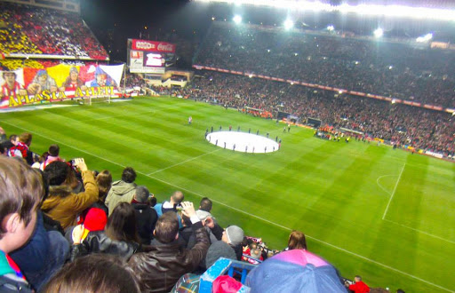 Slowly, I began to resign myself to an evening of standing outside the ground, listening to the crowd chant and roar, I looked around aimlessly for even the slightest glimpse of mate and as Danny queued patiently for his ticket, blithely shrugging his shoulders at my foolishness, his phone rang. It was John, asking whether he knew where the fuck I’d gotten to. Thankfully, John had accepted Danny’s Facebook friend request earlier in the day his number was on his profile. Quick thinking!